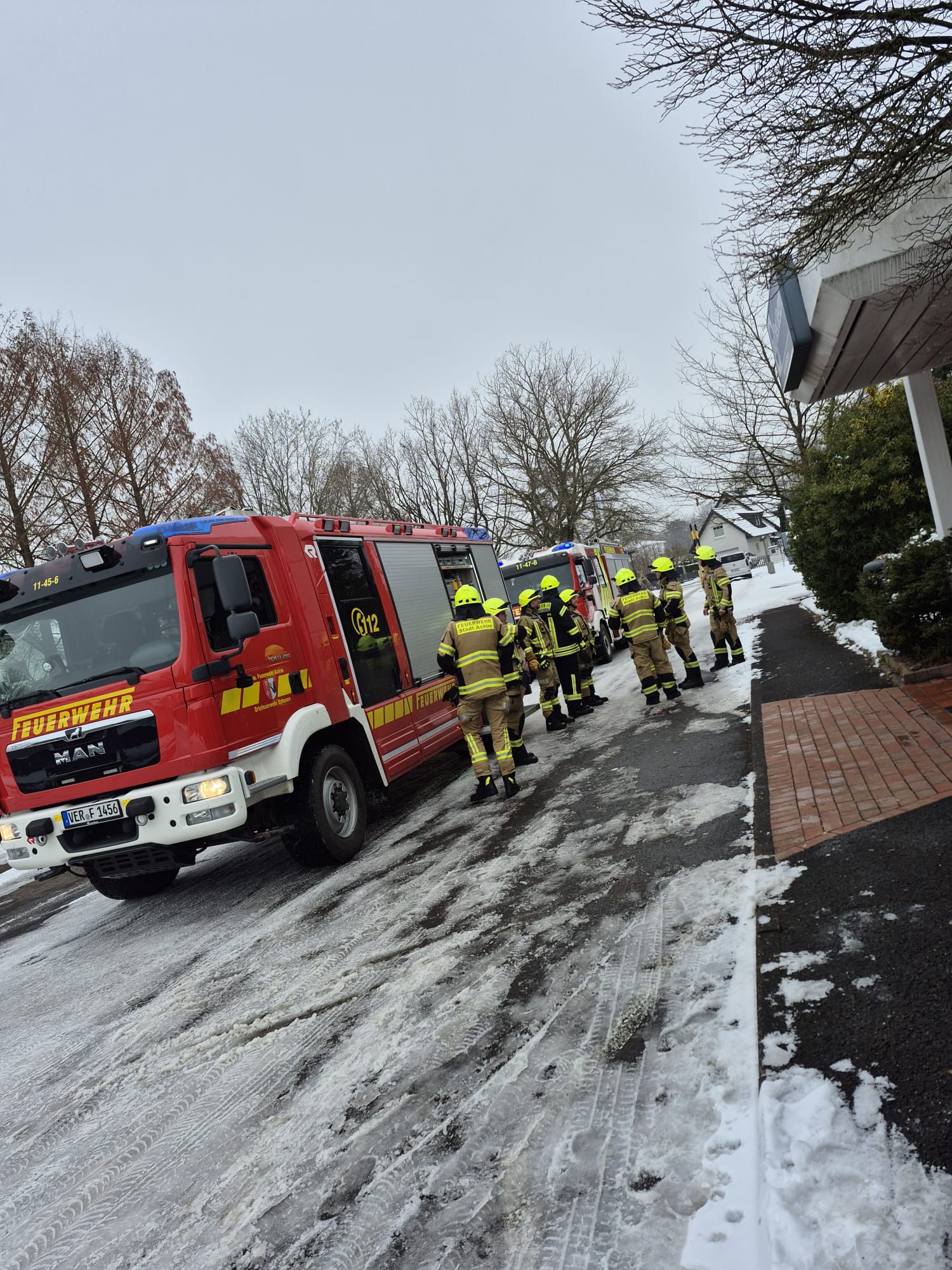 Am Samstagvormittag gegen 11:30 Uhr wurden wir wegen einer ausgelösten Brandmeldeanlage zu einem örtlichen Hotel alarmiert. Dort stellten wir einen heißgelaufenen Motor in einem Betriebsraum fest. Feuer oder Rauch konnten wir allerdings nicht feststellen, sodass keine akute Gefahr bestand. Unsere Kameraden der Ortsfeuerwehr Achim wurden ebenfalls alarmiert.