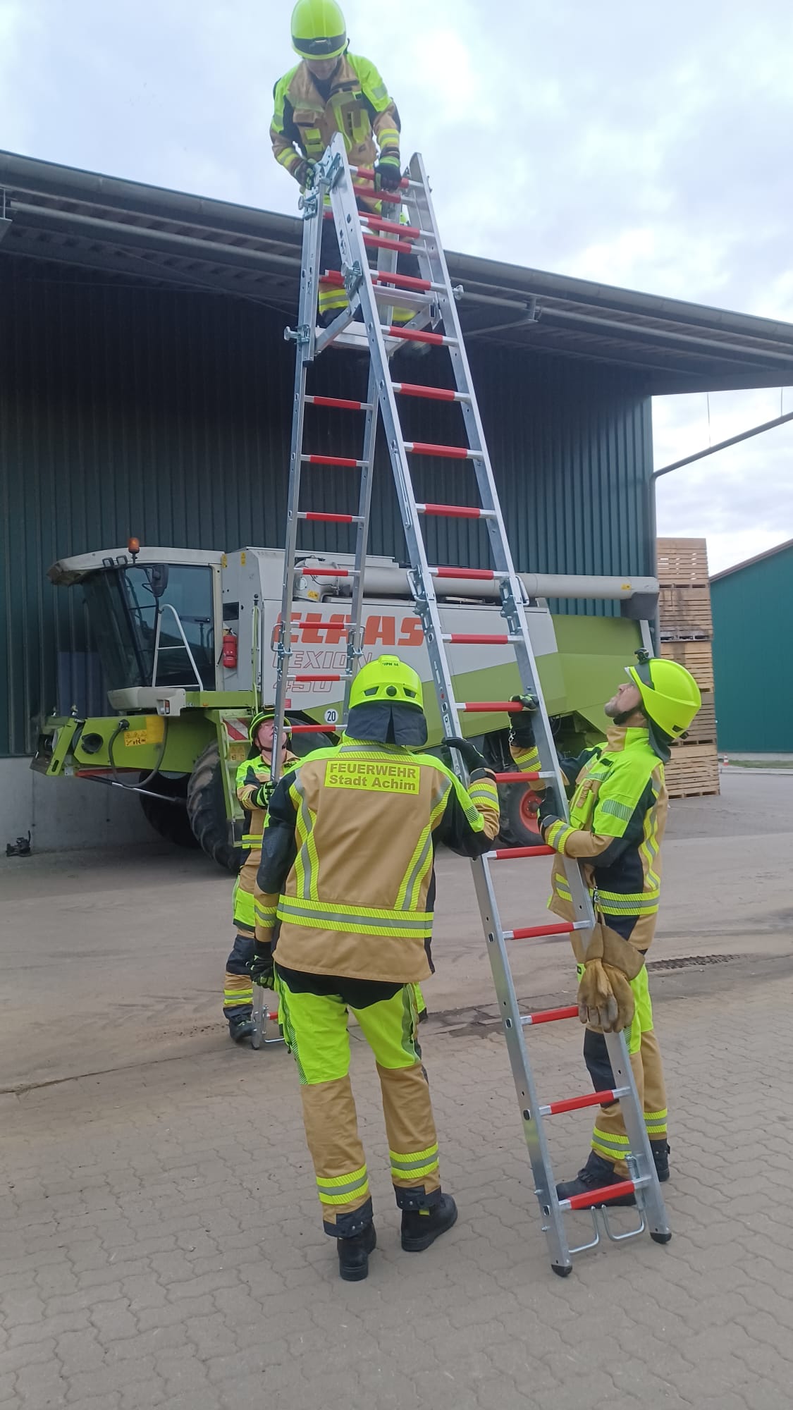 Wir haben unterschiedliche Einsatzmöglichkeiten geübt, wie die Rettung von Verletzten oder uns selber über unsere Leitern. An dieser Stelle möchten wir uns bei der Familie Vagt bedanken, dass wir die Biogasanlage in Bollen für unsere Übungen benutzten durften. Dort konnten wir insbesondere das korrekte Aufstellen und Sichern der mehrteiligen Steckleiter üben.