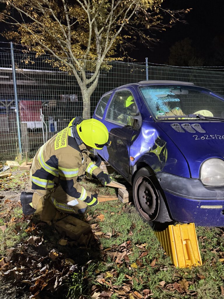 In den letzten Wochen übten unsere Gruppen der Einsatzabteilung unter anderem die technische Hilfeleistung bei Verkehrsunfällen. Dafür fuhren wir zum Feuerwehrhaus Achim und konnten dort an alten Autos üben. Wir öffneten mit unserer hydraulischen Schere und dem Spreizer die Türen der PKW und retteten die verunfallten Personen. Dafür benutzen wir die Airbag-Sicherung, Spanngurte zum Aufhalten der Türen und das Spine-Board zum Retten. Außerdem gehören V-Struts zum Stabilisieren des PKW genauso zu unserem Werkzeug bei der technischen Hilfeleistung, wie Holzunterbauten und Hebekissen. Bei richtigen Einsätzen kommen dann noch Sichtschutzwände, Erste-Hilfe-Maßnahmen und die persönliche Patientenbetreuung zum Tragen. Verkehrsunfälle mit eingeklemmten Personen gehören gerade durch unseren Autobahnabschnitt zur Routine. Ein ruhiger, lösungsorientierter und schneller Ablauf unserer technischen Hilfeleistung ist dadurch umso wichtiger.