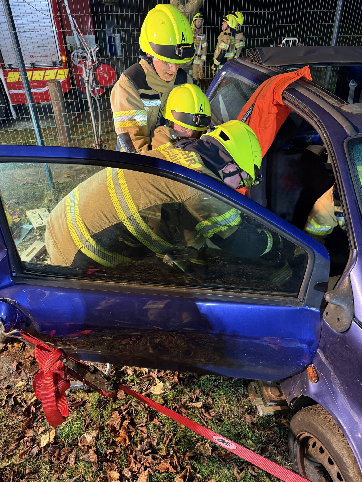 In den letzten Wochen übten unsere Gruppen der Einsatzabteilung unter anderem die technische Hilfeleistung bei Verkehrsunfällen. Dafür fuhren wir zum Feuerwehrhaus Achim und konnten dort an alten Autos üben. Wir öffneten mit unserer hydraulischen Schere und dem Spreizer die Türen der PKW und retteten die verunfallten Personen. Dafür benutzen wir die Airbag-Sicherung, Spanngurte zum Aufhalten der Türen und das Spine-Board zum Retten. Außerdem gehören V-Struts zum Stabilisieren des PKW genauso zu unserem Werkzeug bei der technischen Hilfeleistung, wie Holzunterbauten und Hebekissen. Bei richtigen Einsätzen kommen dann noch Sichtschutzwände, Erste-Hilfe-Maßnahmen und die persönliche Patientenbetreuung zum Tragen. Verkehrsunfälle mit eingeklemmten Personen gehören gerade durch unseren Autobahnabschnitt zur Routine. Ein ruhiger, lösungsorientierter und schneller Ablauf unserer technischen Hilfeleistung ist dadurch umso wichtiger.